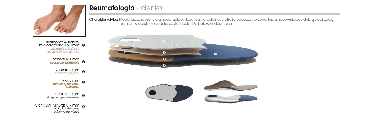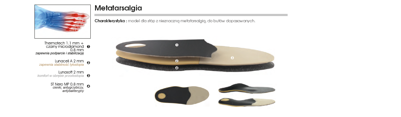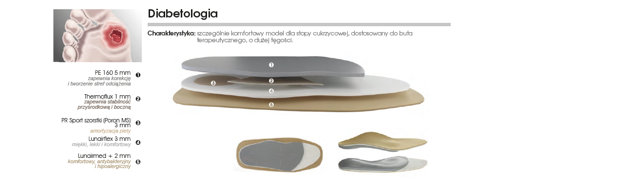 Pacjent lat 45, przewlekle chorujący na cukrzycę, z zaburzeniem czucia w obrębie stóp, po zabiegu operacyjnym w obrębie stawu śródstopno-paliczkowego palca 5 (w wyniku trudno gojącej się rany), bardzo bolesne modzele w okolicy głów II, III, IV kości śródstopia, z typologią budowy stopy – stopa Mortona.